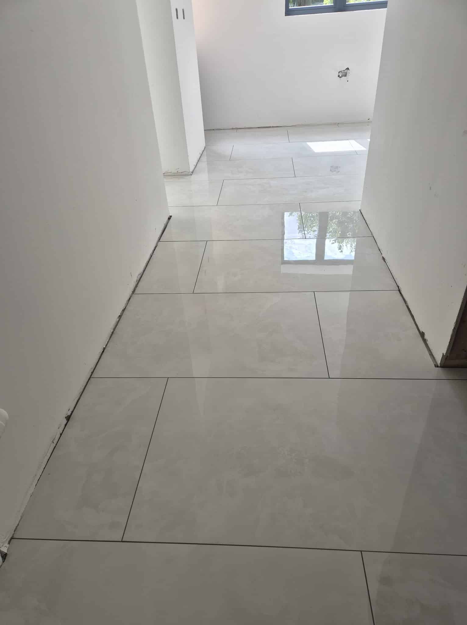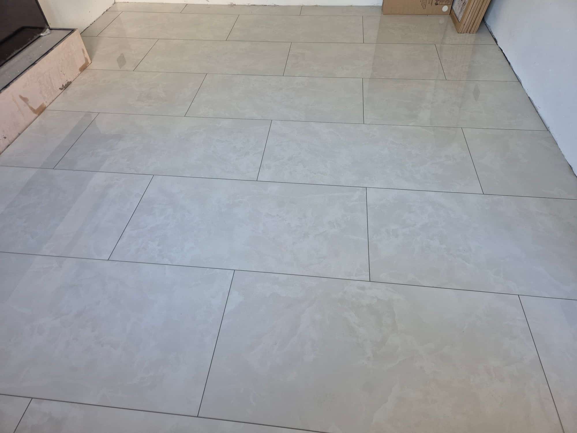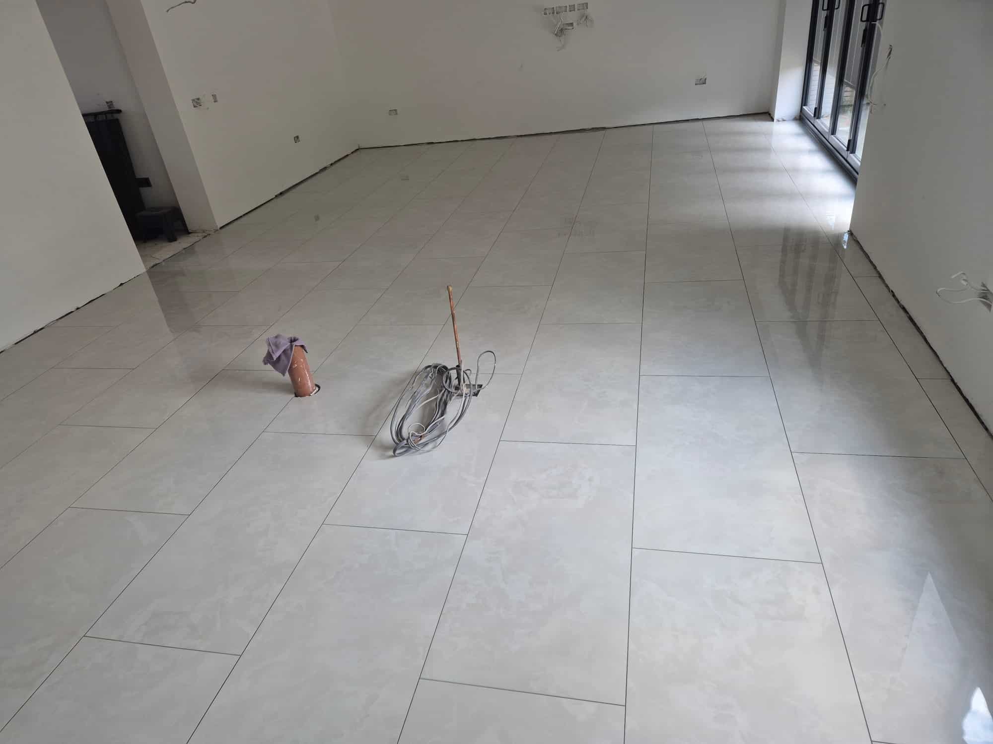 Durable floor tiling laid perfectly level, grouted neatly, built to last.