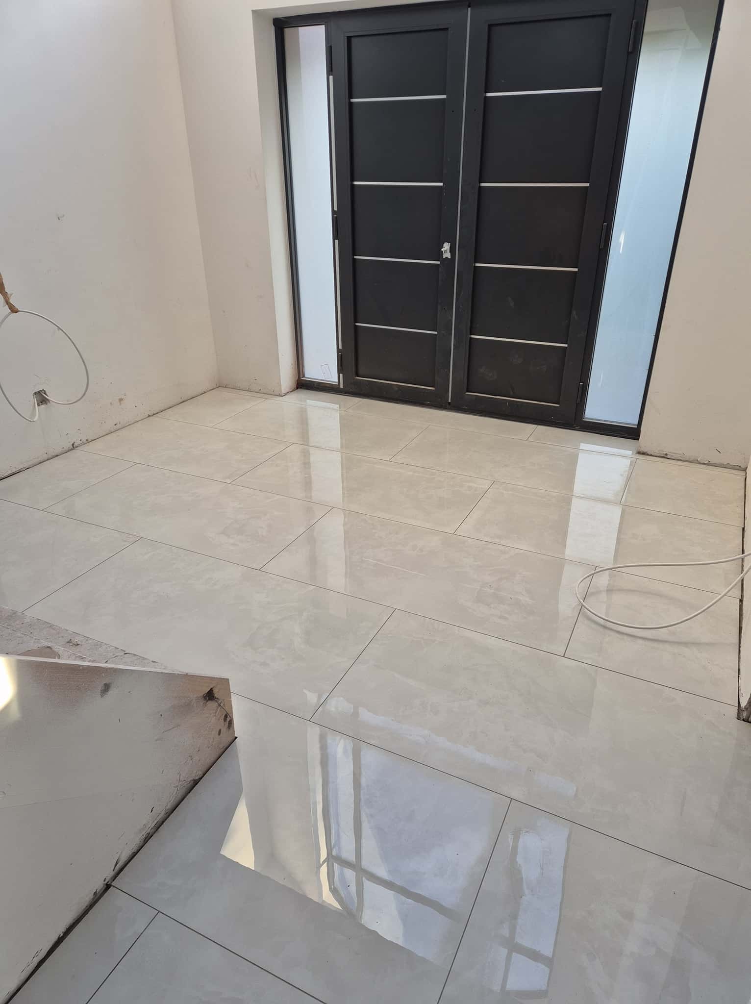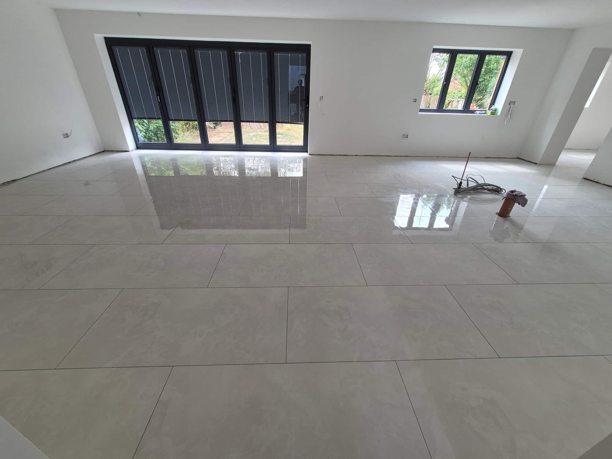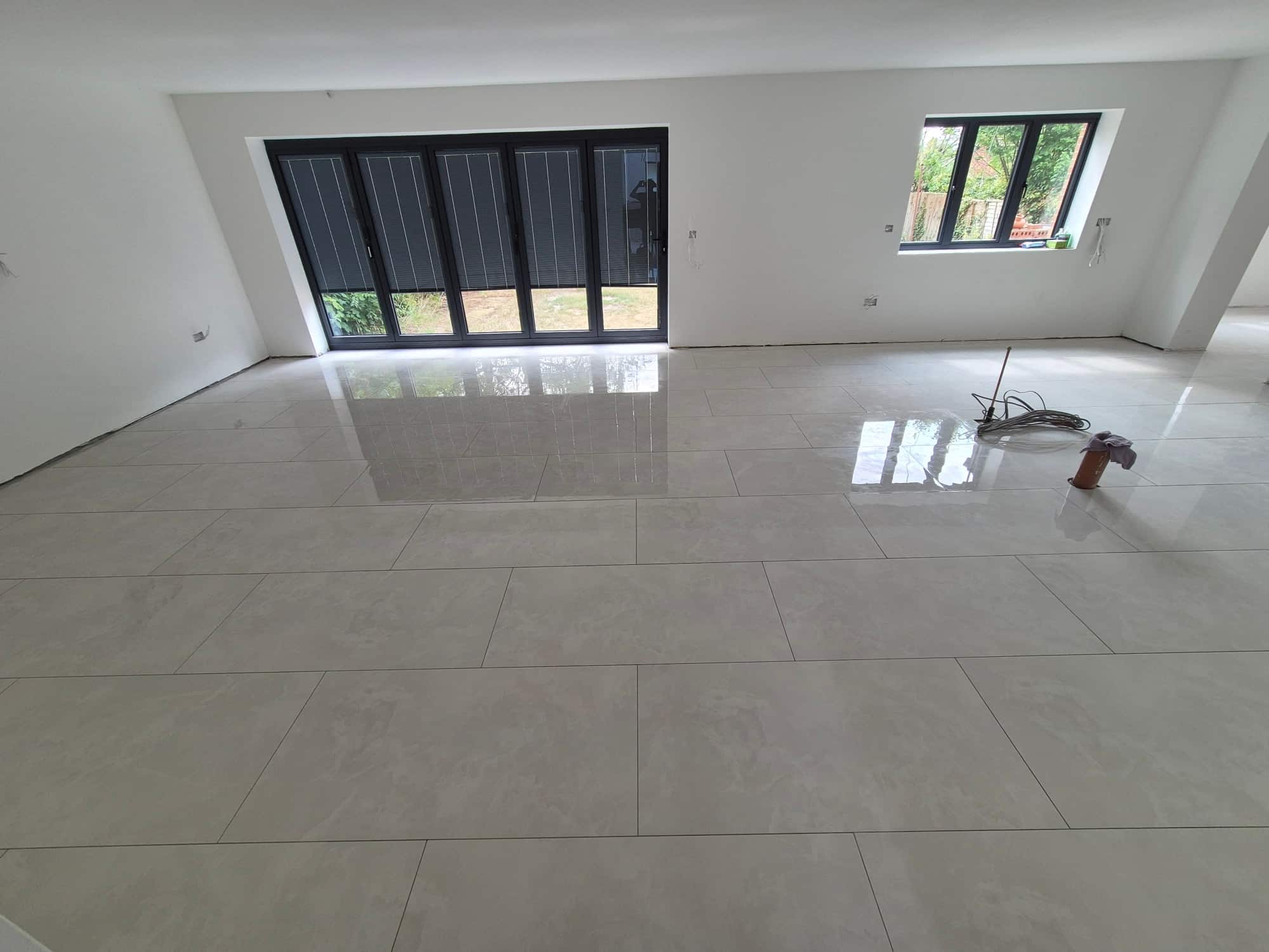 Durable floor tiling laid perfectly level, grouted neatly, built to last.