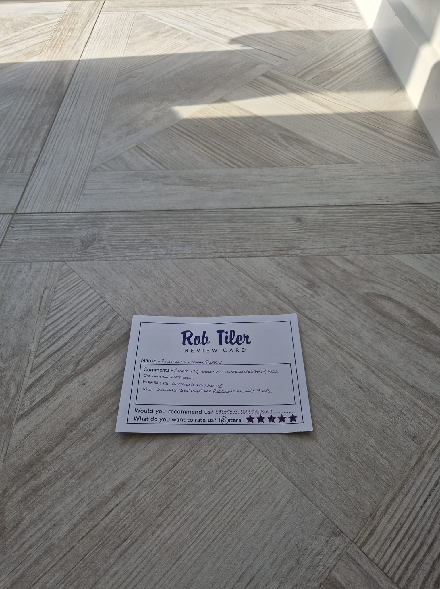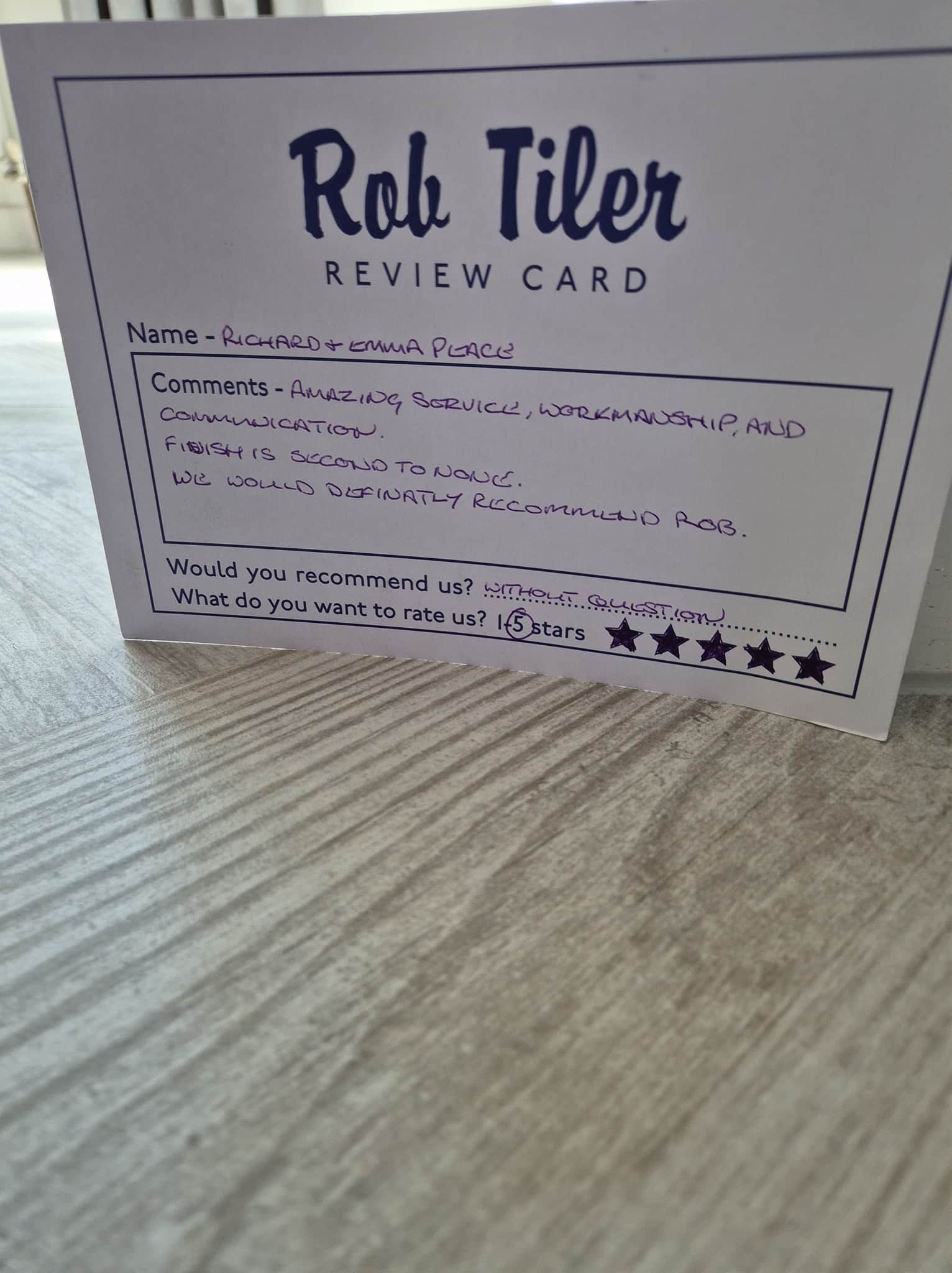 Rob's work can be described as nothing other than perfect. His tiling in all three of our bathrooms has been completed to such a high standard. The care and effort he puts in is absolutely first class. Also an absolute pleasure to work with. Highly recommended, thank you so much!